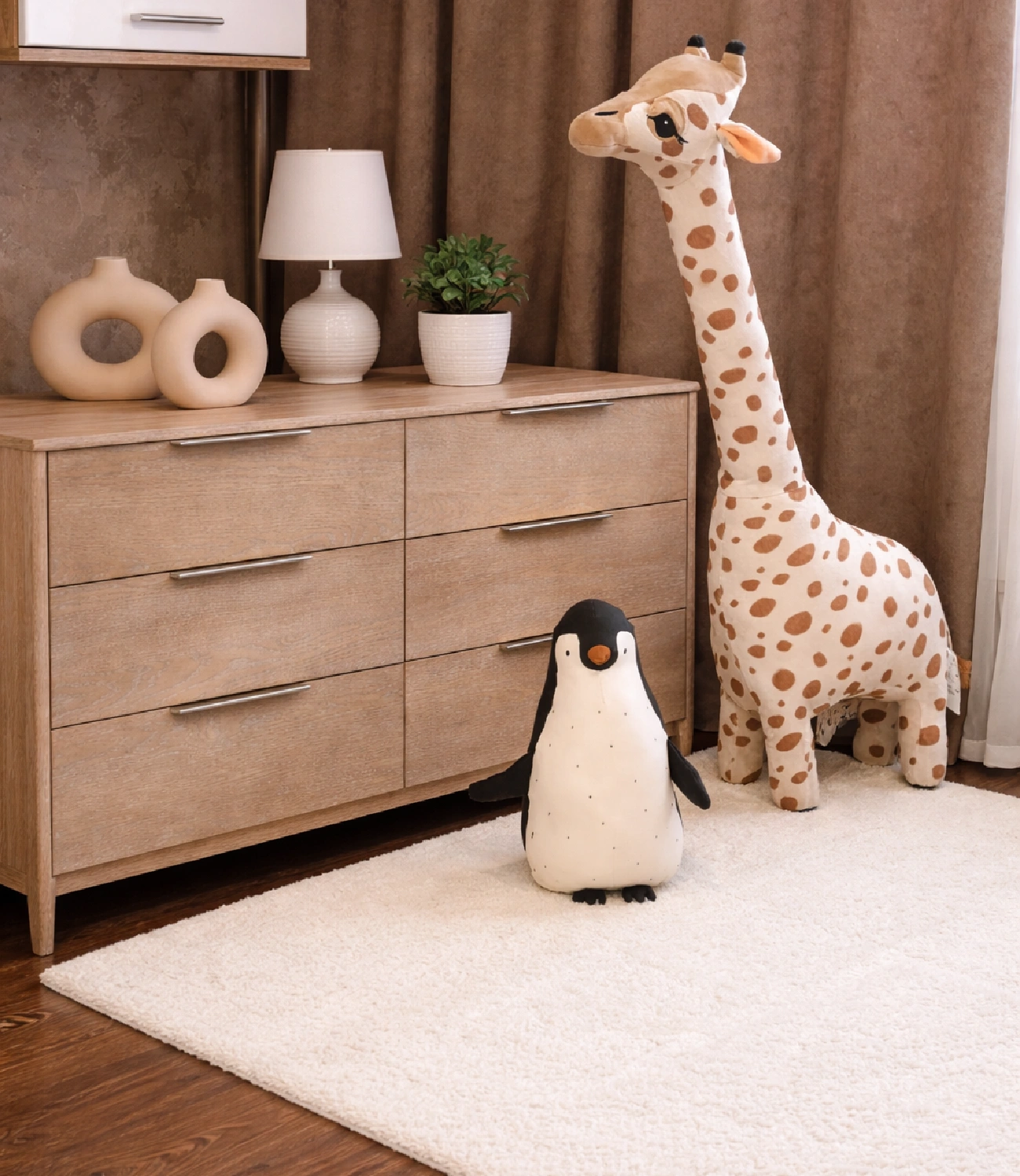 Cambiador Nube fabricado artesanalmente en roble acabado natural mate de la madera, cajones con rieles. No incluye accesorios ni elementos decorativos.