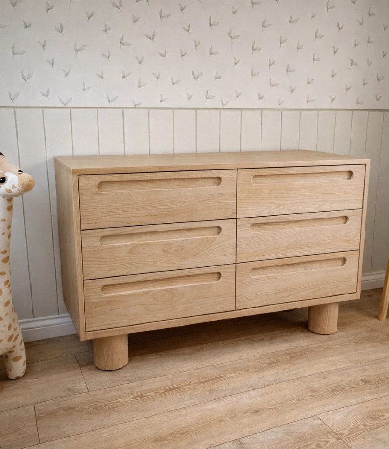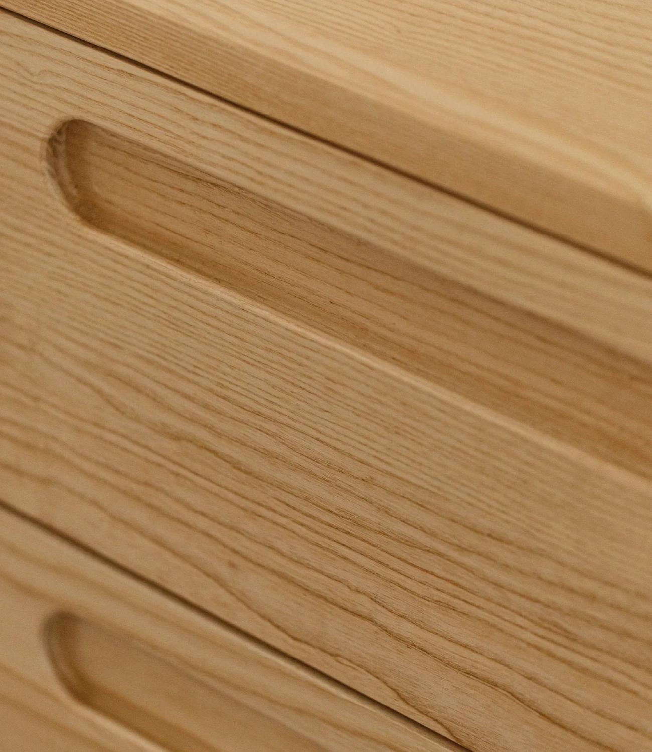 Cómoda Miel fabricada artesanalmente en roble acabado natural mate de la madera, cajones con rieles. No incluye accesorios ni elementos decorativos.