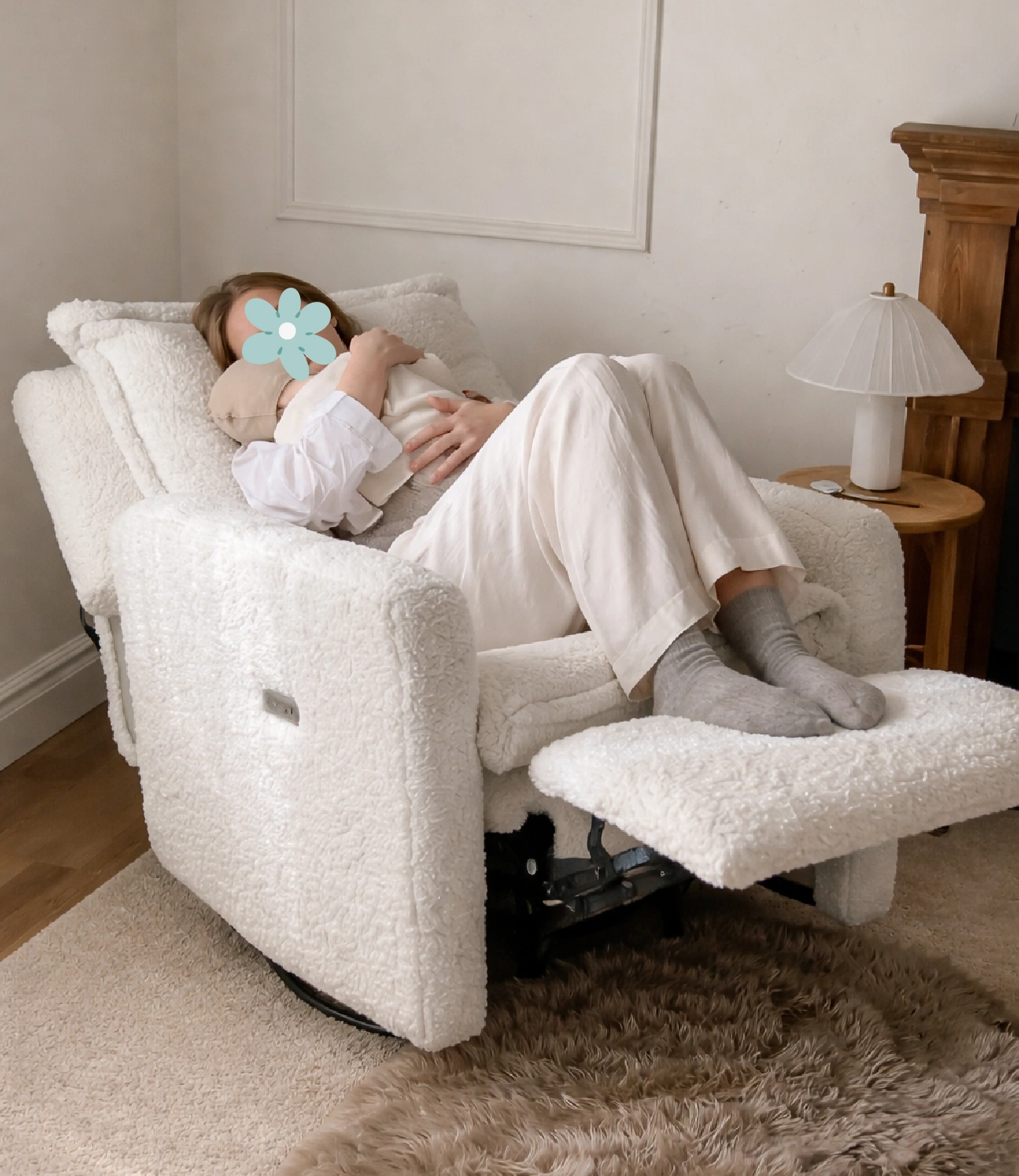 Mecedora Emma, contamos con tres opciones para este diseño, uno es poltrona con apoyapies, el otro es un diseño eléctrico, reclinable, giro parcial y mecedora, tenemos también de guaya, giro 360, mecedora y reclinable, las tres opciones podrás tapizarlo en tono de preferencia. No incluye accesorios ni elementos decorativos.