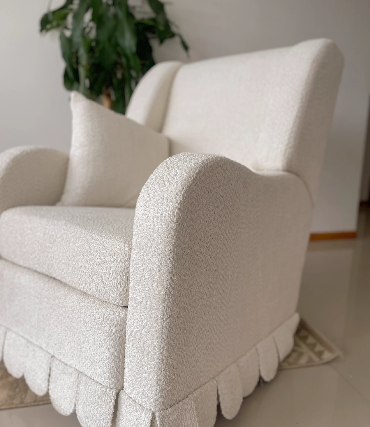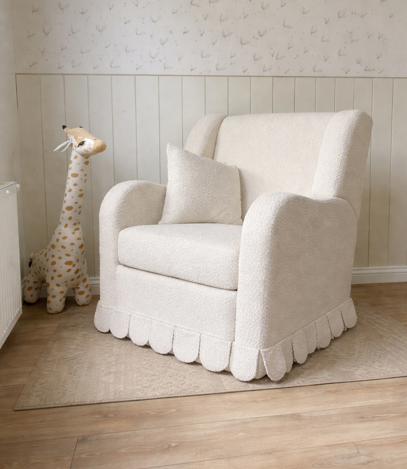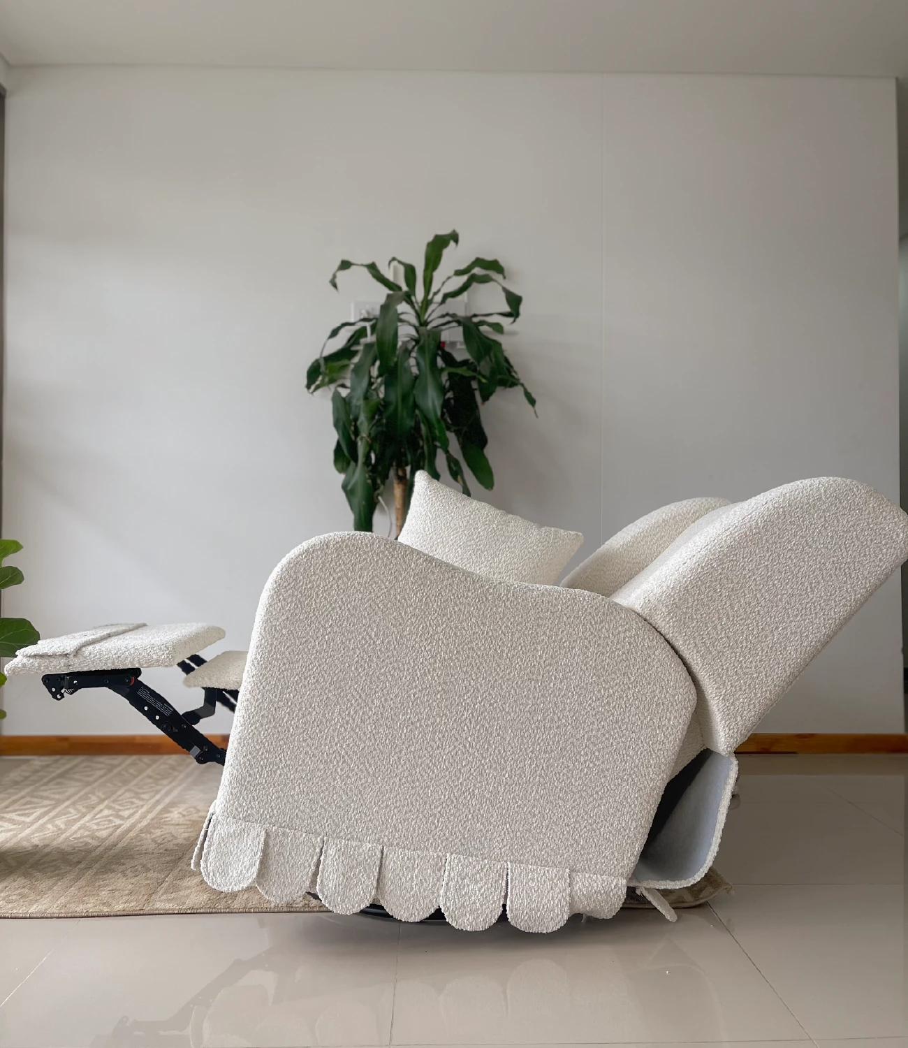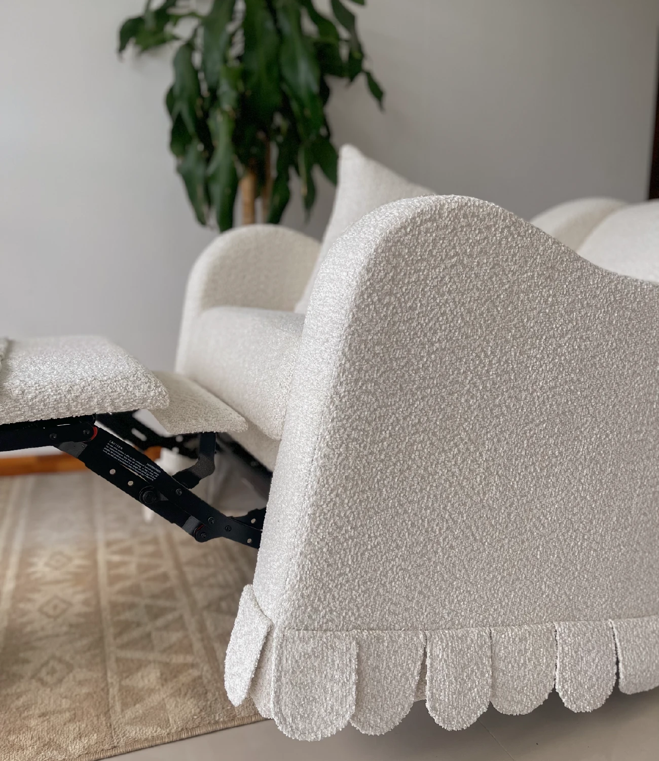 Nuestra mecedora Luna eléctrica está diseñada para acompañarte en cada momento, cuenta con sistema eléctrico para un movimiento suave y continuo, función giratoria, reclinación ajustable y detalles funcionales como velcro posterior que facilita su ajuste y acabado, podrás tapizarla en el tono de preferencia. No incluye accesorios ni elementos decorativos.