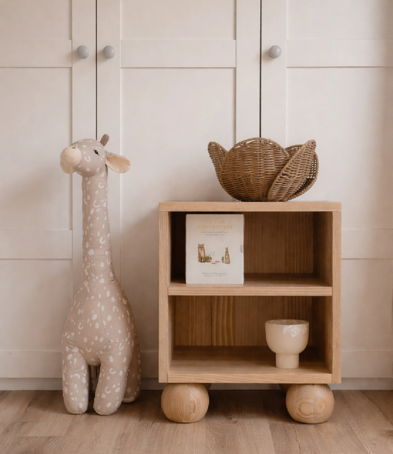 Cambiador Nube fabricado artesanalmente en roble acabado natural mate de la madera, cajones con rieles. No incluye accesorios ni elementos decorativos.