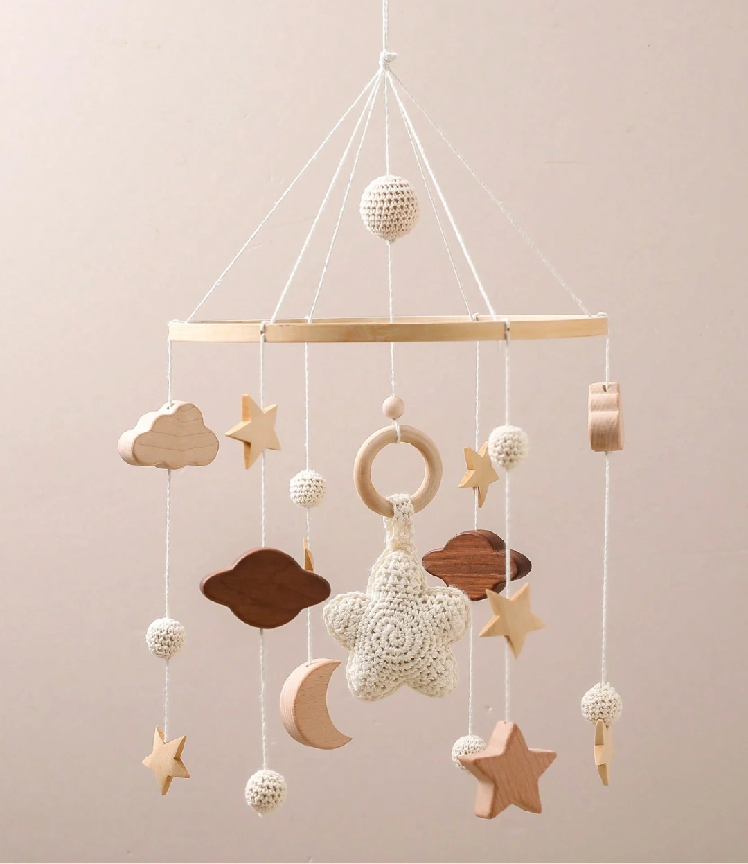 Un diseño delicado que acompañará los primeros meses de vida de tu bebé. Este móvil para cuna aporta un toque especial a la habitación mientras crea un ambiente tranquilo y armonioso.