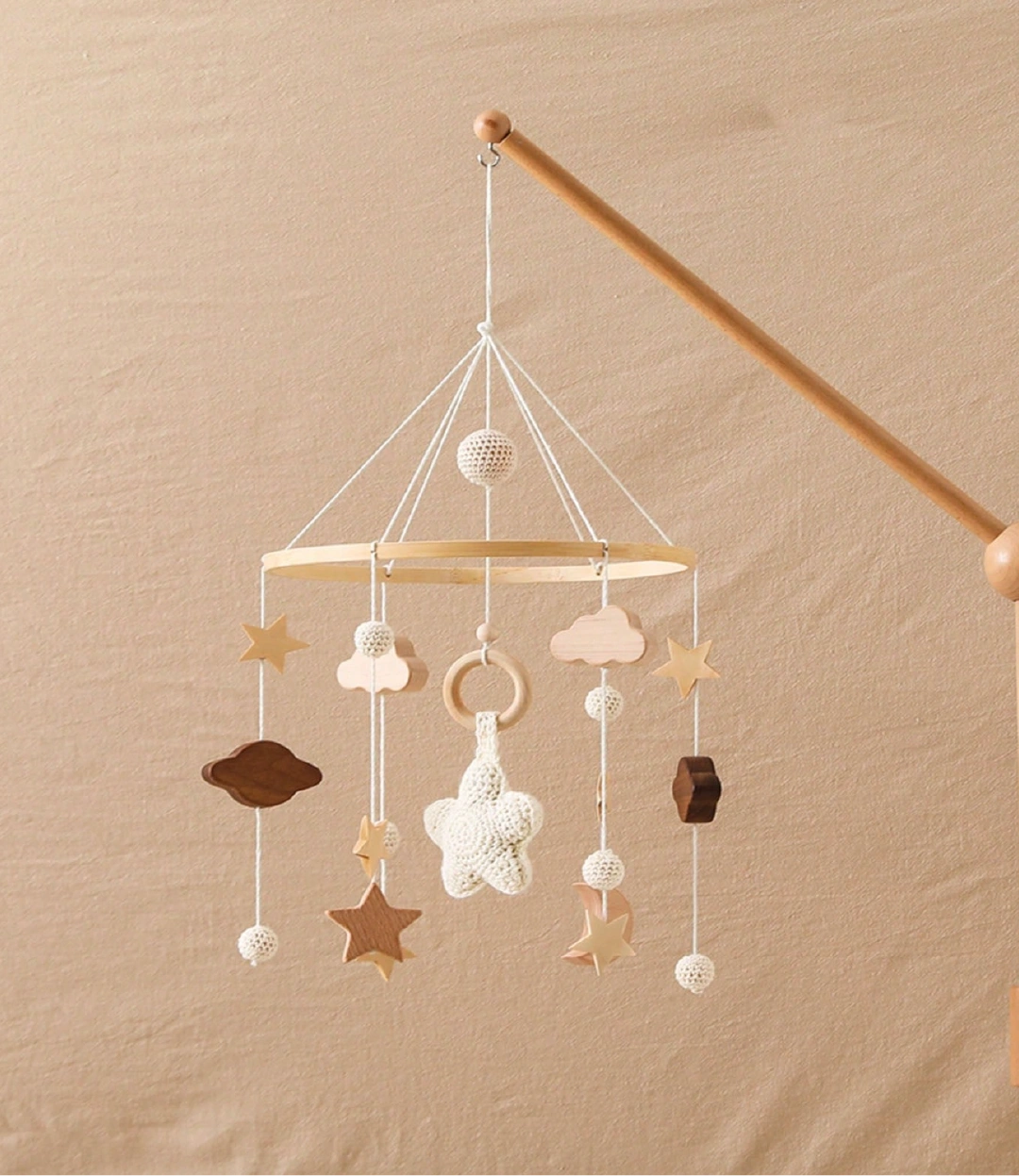 Sus formas suaves y detalles cuidadosamente elaborados estimulan la curiosidad visual del bebé, convirtiéndose en un elemento decorativo lleno de ternura para su espacio.